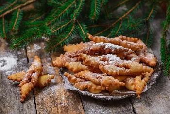 Heat two inches of vegetable / canola oil in the bottom of a heavy pot to 375.º Drop in the pastry knots and fry until golden, turning occasionally. Remove and drain on paper towels.